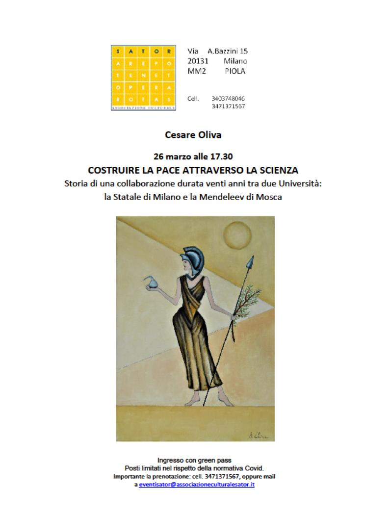 Costruire la pace attraverso la scienza - 26 marzo 2022 - Cesare Oliva -Storia di una collaborazione durata venti anni tra due Università: