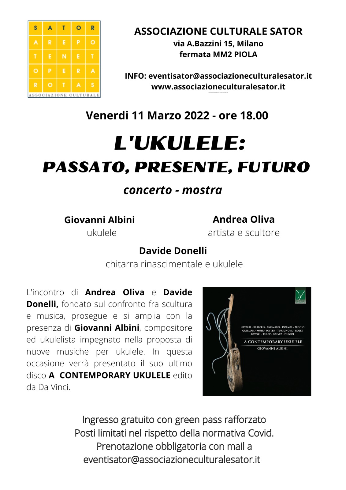 Venerdi 11 marzo L’UKULELE: PASSATO, PRESENTE, FUTURO concerto – mostra con Giovanni Albini, Davide Donelli, Andrea Oliva