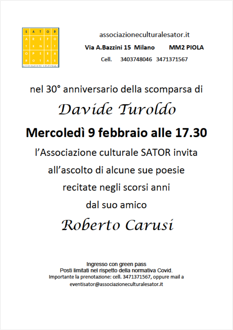Mercoledì 9 febbraio, Vi invitiamo all'ascolto di alcune sue poesie